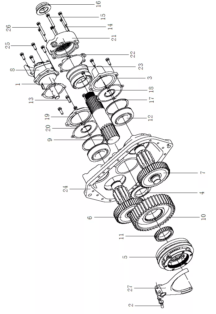 FAST 12JSD160TA transmission has 12 forward gears, the gear ratio steps are arranged reasonably, and has very outstanding fuel economy performance. With mechanical structure design and integrated with a synchronizer, the Maximum input speed is 2600 RPM. The length of the 12JSD160TA transmission is 968.5 mm. The 12JSD160TA manual transmission has 12 gears, and each gear has a different reduction ratio. The 1st gear reduction ratio is 12.098, the 2nd gear reduction ratio is 9.518, the 3rd gear reduction ratio is 7.313, the 4th gear reduction ratio is 5.711, the 5th gear reduction ratio is 4.462, the 6th gear reduction ratio is 3.476, the 7th gear reduction ratio is 2.712, the 8th gear reduction ratio is 2.133, the 9th gear reduction ratio is 1.639, the 10th gear reduction ratio is 1.280, the 11th gear reduction ratio is 1.000, the 12th gear reduction ratio is 0.779, and the reverse gear 1 ratio is 11.572, and the reverse gear 2 ratio is 2.594. 12JSD160TA manual transmission has an input torque range of 1600 N.m. The 12JSD160TA transmission weight is 365/275 Kg.