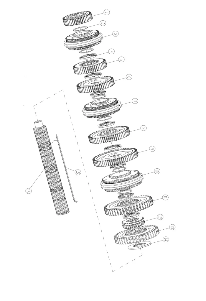 FAST 12-speed MT series transmission have different models, with code J in the model name means mechanical transmission, with code S in the model name means transmission with Double Intermediate Shaft design.
